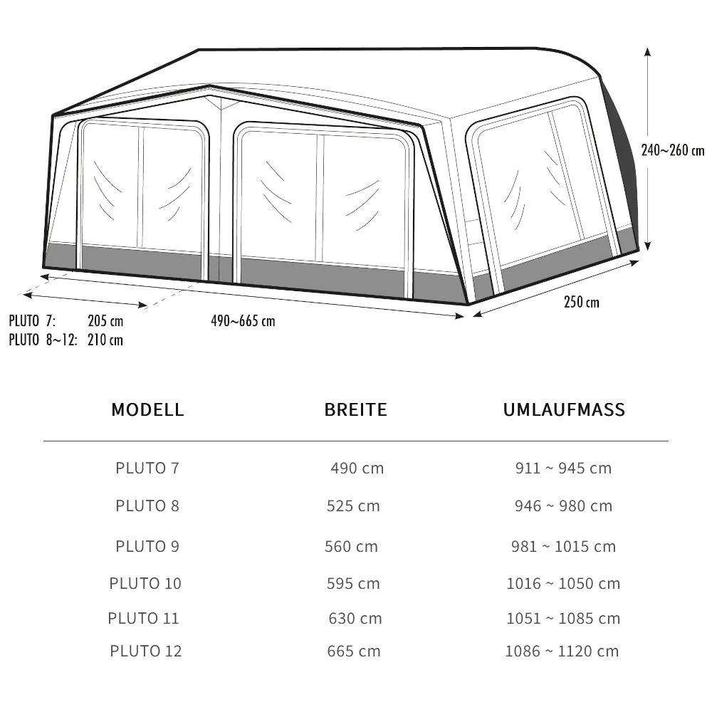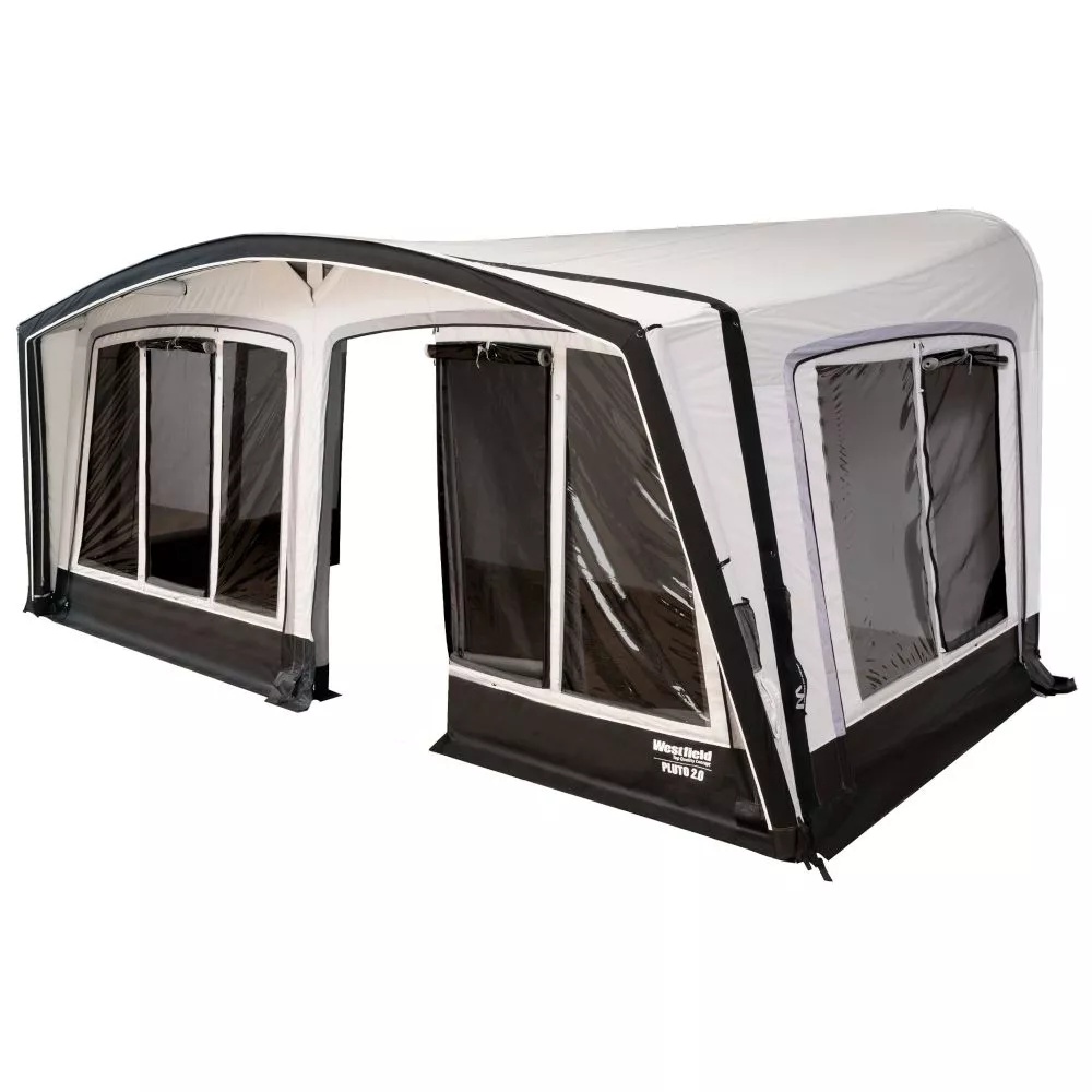 Das aufblasbare Wohnwagen-Vorzelt Westfield Pluto 2.0, ausgestattet mit dem hochwertigen HydroTech-Gewebe, zeichnet sich durch sein aussergewöhnlich schönes Erscheinungsbild und seine hohe Leistung aus. Damit der Aufbau einfach und schnell möglich ist, ist das Vorzelt mit dem fortschrittlichen Advanced-Air-Luftsystem ausgestattet. Die grösseren und stabilen Luftschläuche sind miteinander verbunden und lassen sich von einem einzigen Punkt aus aufpumpen. Schneller kann man sein Vorzelt nicht mehr aufbauen.