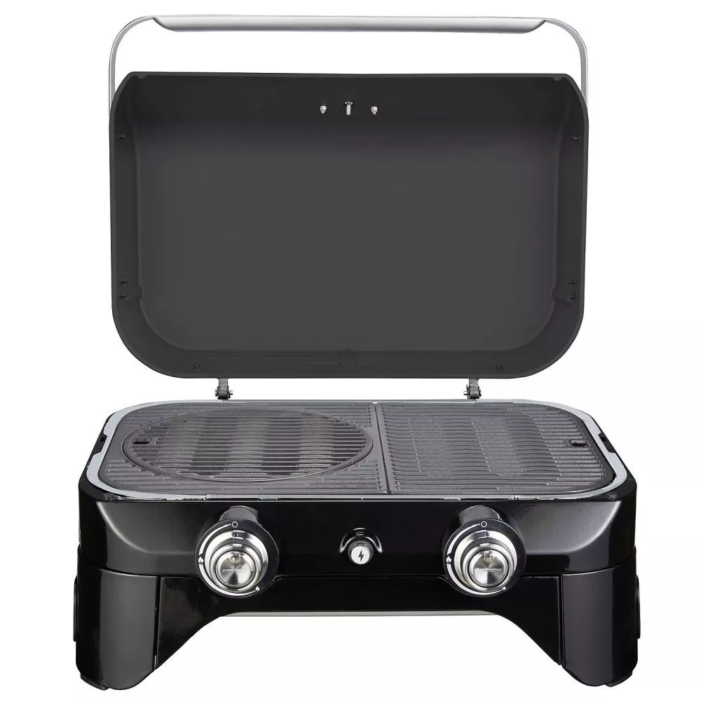 Der elegante Tischgrill Campingaz Attitude 2100 LX ist schlicht in mattem Schwarz gehalten und daher in seinem Auftreten sehr unauffällig.