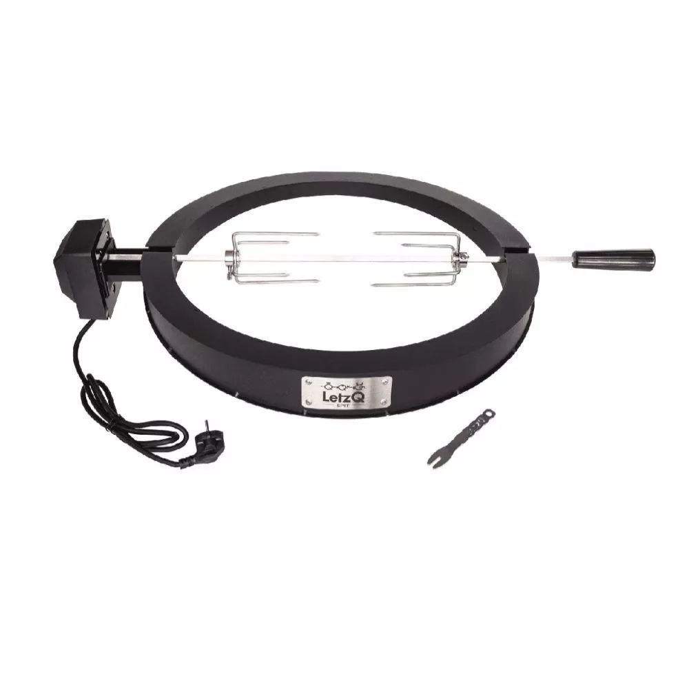 Mit der Big Green Egg Rotisserie für den BGE XLarge kannst du leckere Braten, saftige Grillhähnchen und viele weitere Drehspiess-Gerichte bis zu 15 kg Grillgut einfach auf deinem Holzkohlegrill zaubern. Durch das konstante Drehen des Grillspiesses sorgt das herabtropfende Fett für eine unglaubliche Saftigkeit des darunterliegenden Grillguts. Die dazugelieferten Fleischgabeln halten dein Grillgut fest und sicher auf dem Drehspiess.