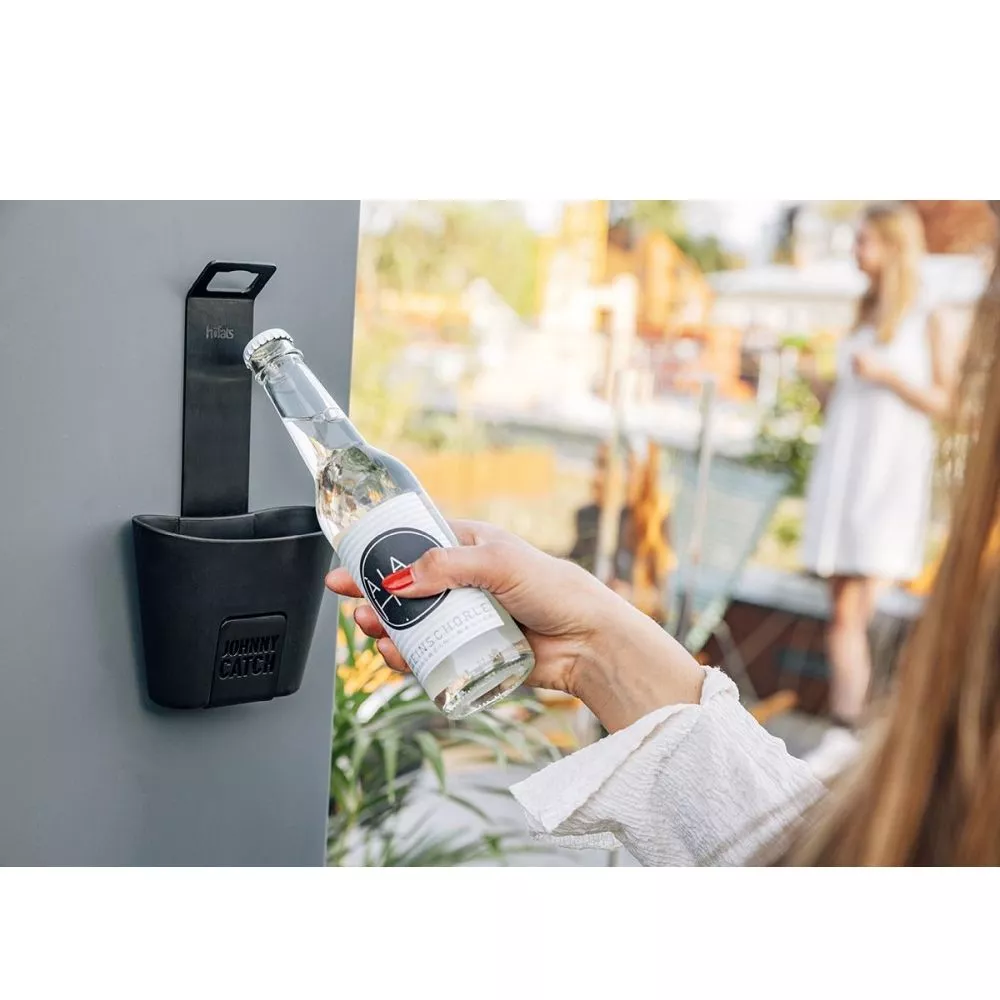 So fangsicher kann der Höfats Johnny Catch Cup Wand-Flaschenöffner sein! Der wohl fangsicherste Wandflaschenöffner der Welt bietet Platz für bis zu 60 Kronkorken im abnehmbaren Auffangbecher! Ob Bier, Limo oder Tonic Water – JOHNNY CATCH Cup fängt alle Kronkorken sanft und sicher. Ganz ohne Werkzeug und Schrauben haftet er mit doppelseitigem 3M-Klebeband auf allen Oberflächen und schon ploppen die Flaschen – in der Gartenlaube, auf der Dachterrasse, in der Stylo-Küche oder im WG-Chaos. Deine Gäste werden JOHNNY CATCH lieben!
