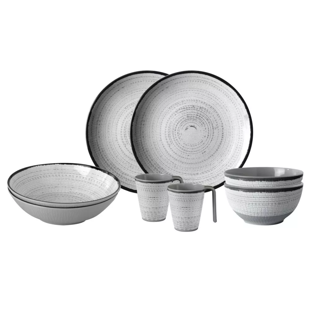 8-teiliges Geschirrset aus je 2 Tellern, Schüsseln und Tassen bestehend – ideal für zwei Personen.