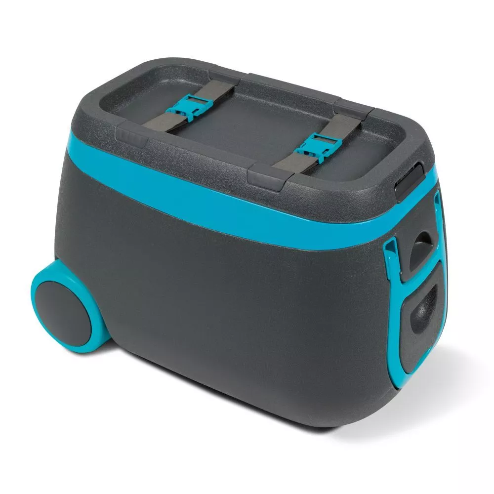 Die Kampa Chilly Bin 42 Liter mit hoher PU-Isolierung ist eine stylische Kühlbox, die die Kälte über eine Dauer von 4 Tagen hält. Die Box lässt sich dank dem robusten Griff und der Rollen selbst bei voller Beladung einfach transportiern. Auf dem Deckel befinden sich elastische Bänder mit Halteklammern zum Befestigen kleinerer Dinge, die nicht gekühlt werden müssen.