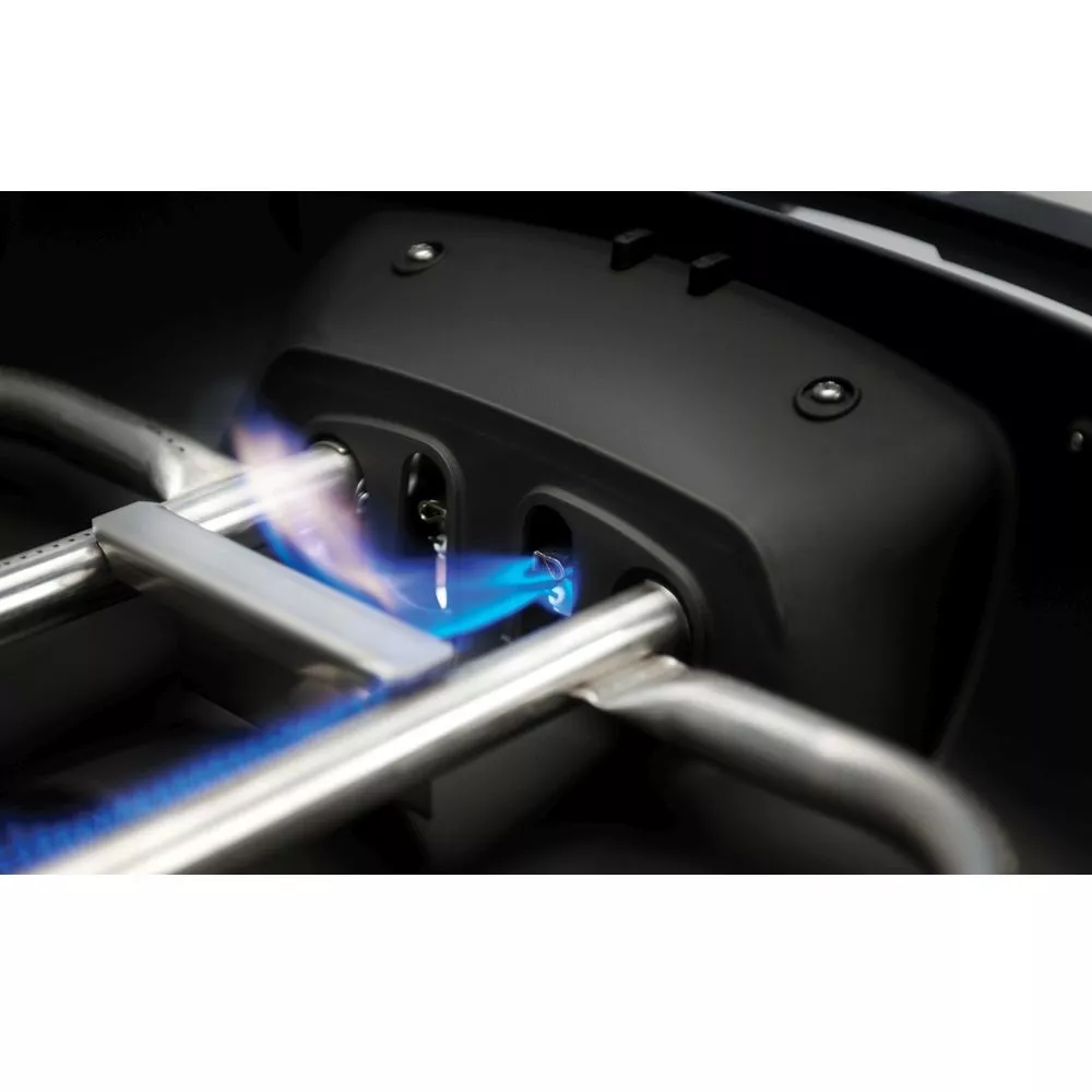 Hierbei wird jeder einzelne Brenner durch einen starken Feuerausstoss eines separaten Gasventils gezündet. Auf diese Weise werden die Brenner auch bei extremen Wetterbedingungen sicher entfacht. Das „verzweifelte“ Klicken einer erfolglosen Piezo-Zündung gehört der Vergangenheit an. - Grillwanne aus widerstandsfähigem, langlebigem Aluguss hergestellt – in mattschwarzem Design