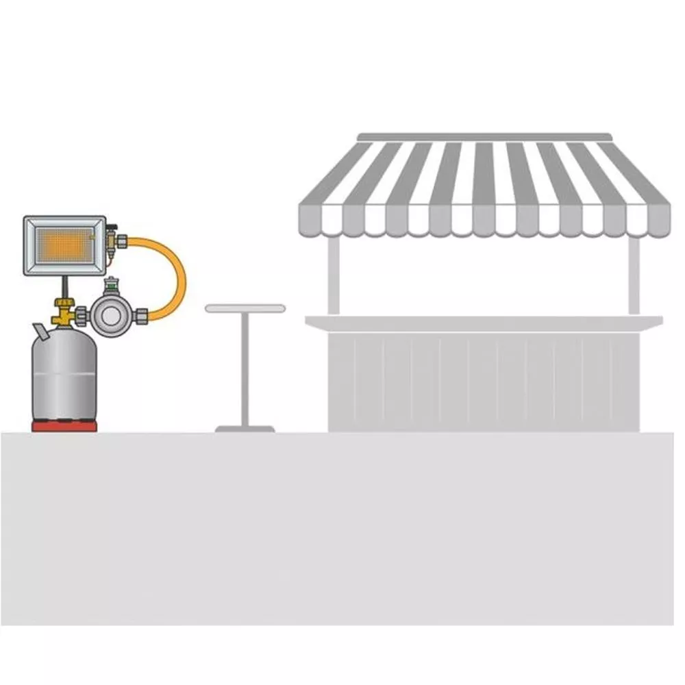Für den Anschluss an Gasflaschen im gewerblichen Bereich. Mit Überdrucksicherung und Manometer zur Dichtheitsprüfung. Geeignet für den Anschluss an 5 und 11 kg Gasflaschen. 1,5 kg/h.