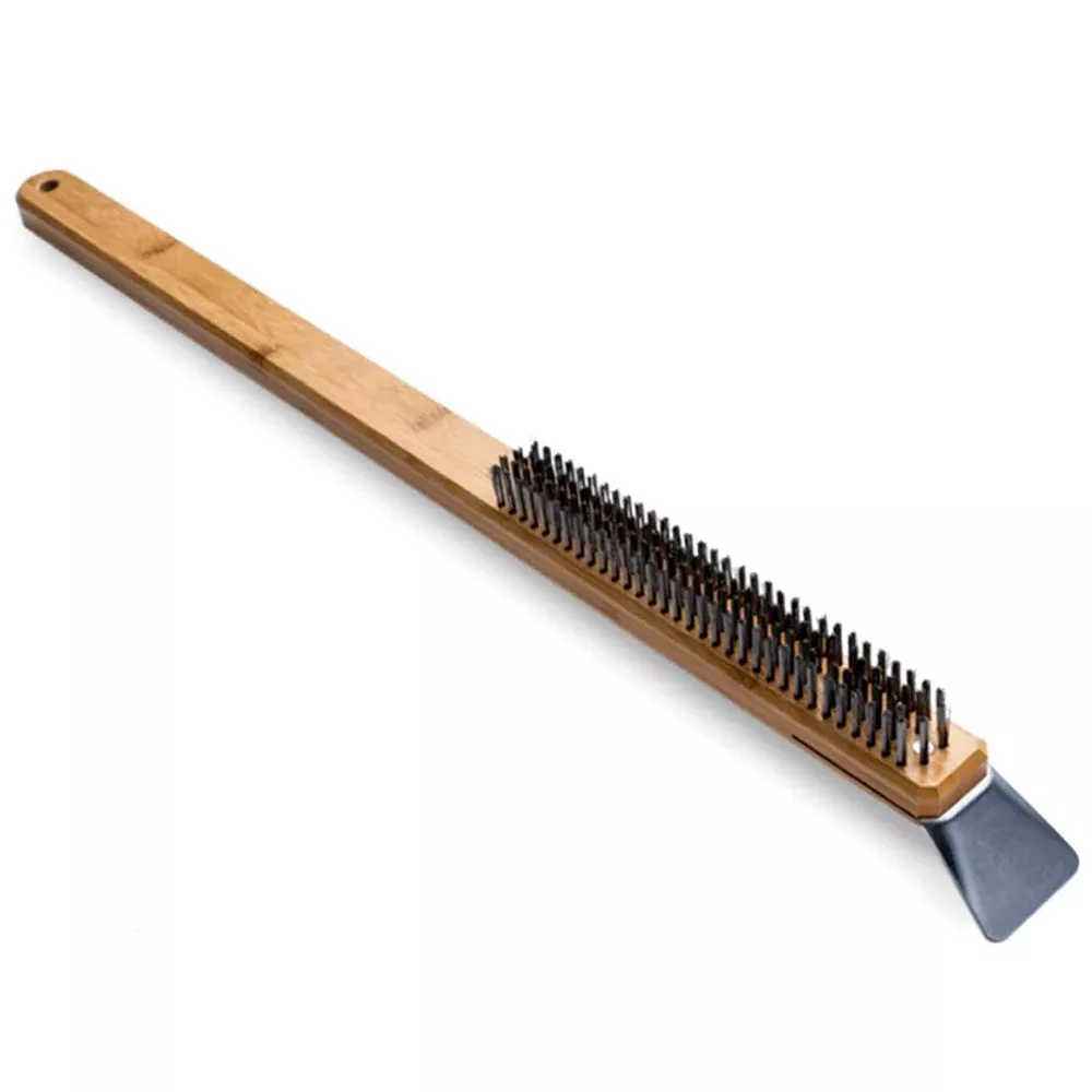 Die Ooni Pizzaofen-Bürste ist zweifach verwendbar: als Bürste für Backsteine und als Schaber. Sie verfügt über einen gut in der Hand liegenden Holzgriff sowie eine langlebige Schabfläche und strapazierfähige Borsten aus Edelstahl. Das perfekte Werkzeug, um deinen Ooni Pizzaofen nach dem Kochen effizient und schnell zu reinigen. Mit den Borsten kannst du überschüssiges Mehl entfernen und mit der anderen Seite anschliessend Essensreste abschaben.