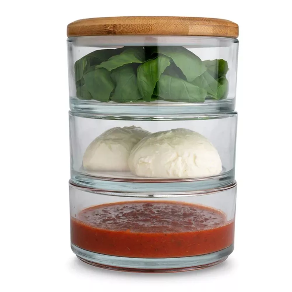 Du sucht eine stilvolle Lösung für die Teigzubereitung und Pizza-Zutatenlagerung? Dann ist das Ooni Stapelgefäss-Set genau das richtge Zubehör für dich. Mit diesem Set gehören zusammengeklebte Teigbällchen der Vergangenheit an. Dank der Glaswand kannst du du deinem Teig beim Geh-Prozess beobachten. Mit der abnehmbaren luftdichten Silikondichtung und dem nachhaltigen Bambusdeckel ist es ein Kinderspiel, deine Zutaten für eine grossartige Pizza vorzubereiten, zu stapeln und frisch zu halten.