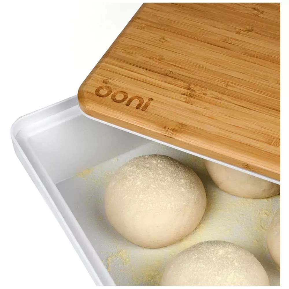 Optimiere deinen Platz für die Zubereitung von Pizza mit dem Teigdeckel & Vorbereitung von Ooni. Egal, ob du zu Hause oder unterwegs eine Pizza zubereitest, diese leichte und haltbare Arbeitsplatte bietet eine glatte, feuchtigkeitsresistente Oberfläche zum Ausrollen des Teigs, zum Zubereiten von Belägen oder zum Servieren von frisch gebackenen Pizzen. Der Zubereitungsdeckel, der aus nachhaltigem Bambus hergestellt wird, funktioniert auch allein, aber er glänzt erst richtig, wenn er fest auf den Deckel der Ooni-Teiglingsbehälter aufgesteckt wird. Mit einer Dicke von 1,3 cm und einem Gewicht von nur 1,3 kg hilft dir der 2-in-1-Ooni-Zubereitungsdeckel dabei, grossartige Pizzen zuzubereiten, egal wo du bist.