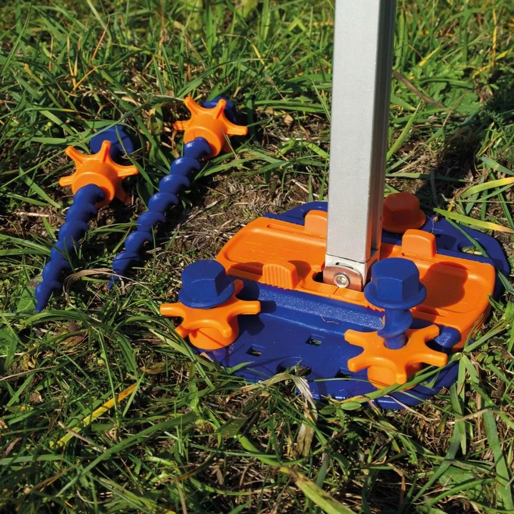 Peg&Stop von Peggy Peg ist der glasfaserverstärkte, stufenlos höhenverstellbare Schraubhering mit Kontermutter passend zur Fix&Go Ankerplatte 2.0. Der innovative Schraubhering Peg&Stop S wird mittels Akkuschrauber oder Handbedienung eingeschraubt, nur so lange bis ausreichend Halt vorhanden ist und die Schraube keinen Vortrieb mehr hat. Genau an diesem Punkt genügt ein Griff zur Stopmutter und eine kurze leichte Rechtsdrehung baut den Konterdruck zur Platte auf. Somit ist diese unverzüglich und stufenlos fixiert. Im Winter kann ein Vorbohren hilfreich sein.