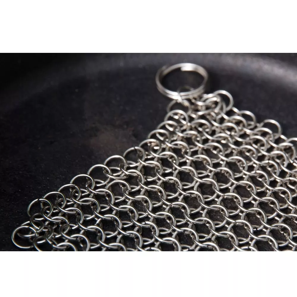 Mit dem Ringreiniger XL von Petromax kannst du Angebranntem an den Kragen gehen.Dieses hochwertige und strapazierfähige Utensil aus Edelstahl reinigt mühelos Gusseisen, Schmiedeeisen und Edelstahl ohne die wertvolle Patina zu beschädigen. Das Kochgeschirr einfach abkühlen lassen und mit warmem Wasser schonend die angebrannten Essensreste abreiben. Spülmittel wird nicht benötigt. Nach dem Säubern nochmals abspülen und vor dem Verstauen gut abtrocknen, sonst ist Kontaktkorrosion möglich.