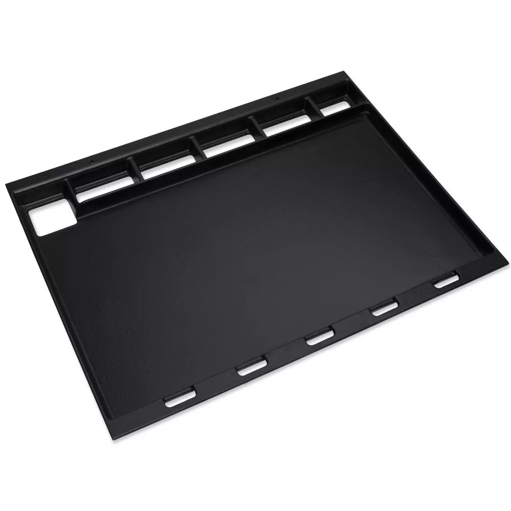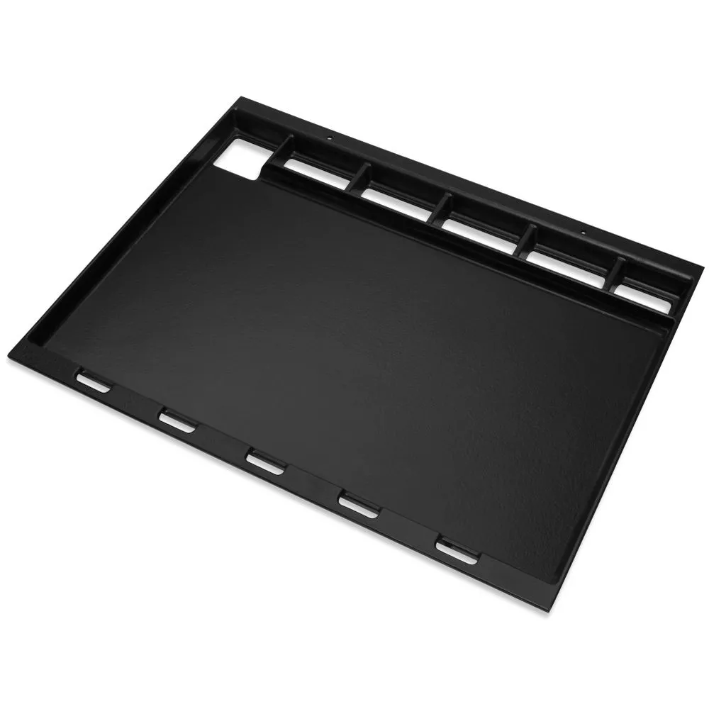 Mit der Weber Full Size Grillplatte aus porzellanemailliertem Gusseisen lässt sich der Grill in einen vollwertigen Flat Top Grill umrüsten. Die Platte mit gezieltem Fettablaufmanagement ersetzt den gesamten Rost. Sie sorgt für eine gleichmässige Hitzeverteilung und schnelle Aufheizzeit. Die Grillplatte ist geeignet für die Weber Spirit 300-Serie ab 2013.