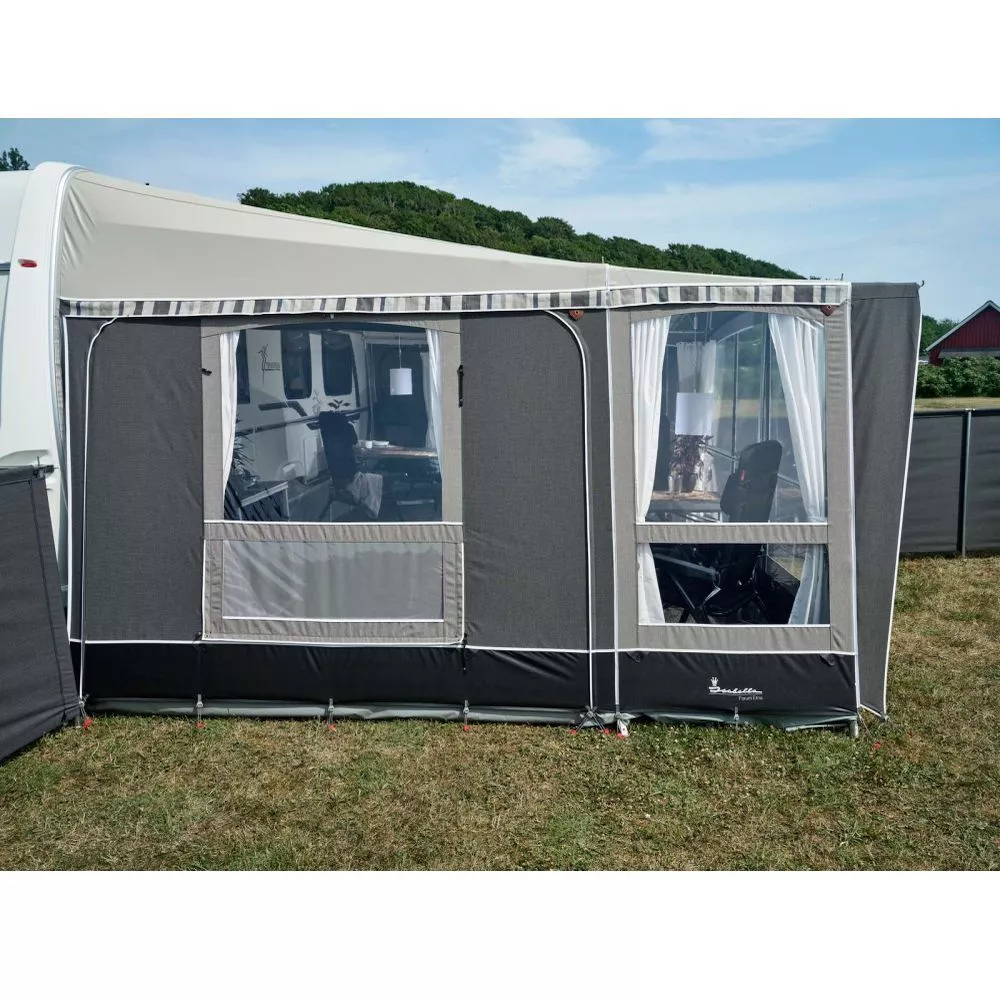 Es gibt jede Menge Vorteile vom Isabella Forum Etna: du kannst das Vorzelt flexibel und einfach ganz nach deinen Wünschen umgestalten. Je nachdem auf welchem Campingplatz du dich gerade befindest oder der Platz gerade nicht so ausreicht, kannst du verschiedene Vorzeltteile umgestalten. Zum Beispiel kannst du die Vorderwand komplett um 1 Meter nach hinten versetzen, um so eine kleine gemütliche Terrasse zu schaffen. Setz dich abends mit deiner Familie und Freunden entspannt auf die Terrasse und geniesse die schönen Abendstunden, bevor der Tag zu Ende geht.