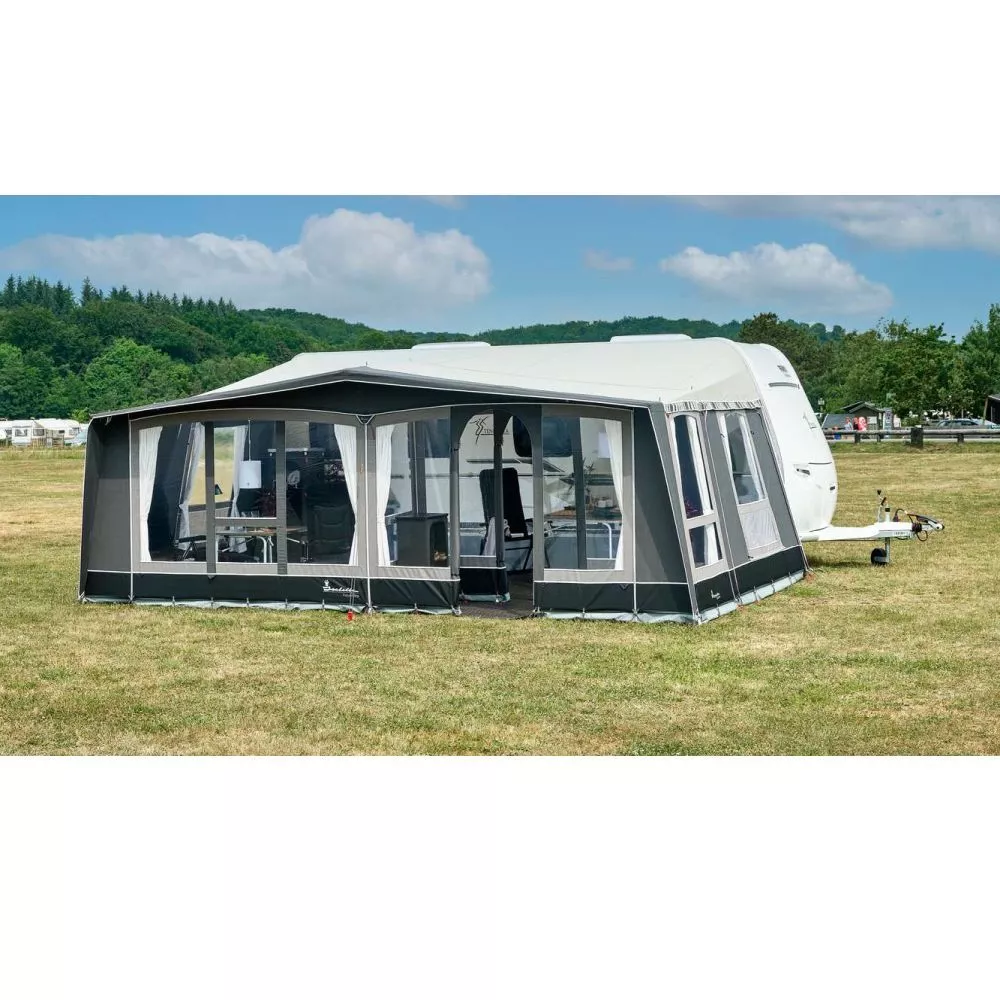 Serienmässig wird das Wohnwagenvorzelt Isabella Forum Etna mit einem zusätzlichen Frontteil und den passenden Gardinensätzen, Sturmleinen, sowie Zelt- und Gestängetasche und weiterem Zubehör geliefert. Für noch mehr Platz oder zusätzlichen Schlafraum rund um dein Isabella Forum Etna sorgt ein passender Seitenanbau, der an der Seite des Vorzelts angebracht wird.