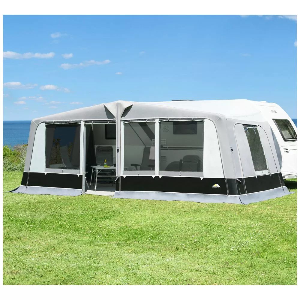 Das DWT Scala Air 280 ist ein Traumzelt für Camper, die das Besondere in der Ästhetik und beim Raumgefühl lieben. Denn dieses aufblasbare Wohnwagenvorzelt bringt Stabilität und Bequemlichkeit auf einen neuen Nenner. Ein hochwertiges und sehr widerstandsfähiges HQ-Material macht das Vorzelt solide, sicher und fest. Zudem ist das Scala Air ein echtes Raumwunder mit zahlreichen Belüftungsoptionen für eine perfekte Zeltklimatisierung bei jeder Wetterlage. An besonders heissen Tagen können für einen luftigen aber dennoch überdachten Bereich vor dem Caravan alle Wandelemente per Reissverschluss abgenommen werden.
